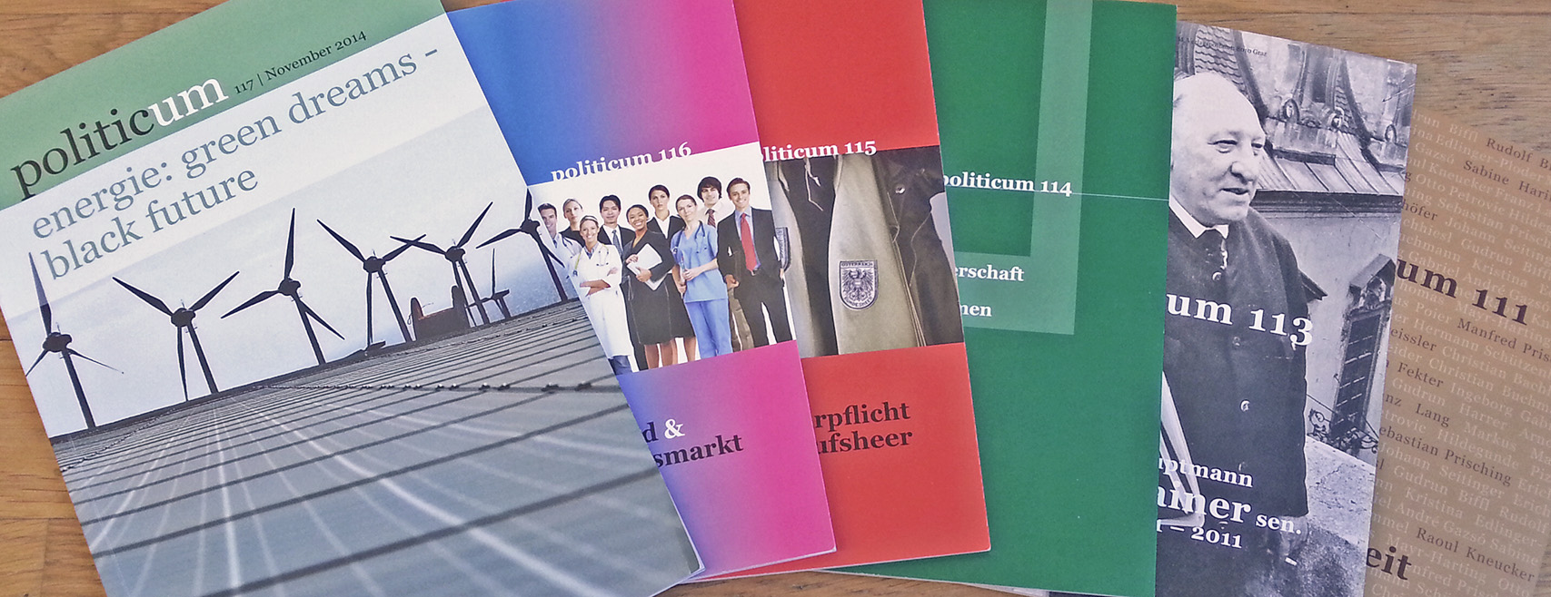 Seit dem wurden 121 „politicum“-Ausgaben zu den unterschiedlichsten Themen herausgebracht. „politicum“ erscheint 2 x jährlich und ist zu einem Abonnement-Preis von € 25,– (für 4 Ausgaben) und zu einem Stückpreis von € 10,- erhältlich. Bestellen Sie im Shop oder wenden Sie sich an: